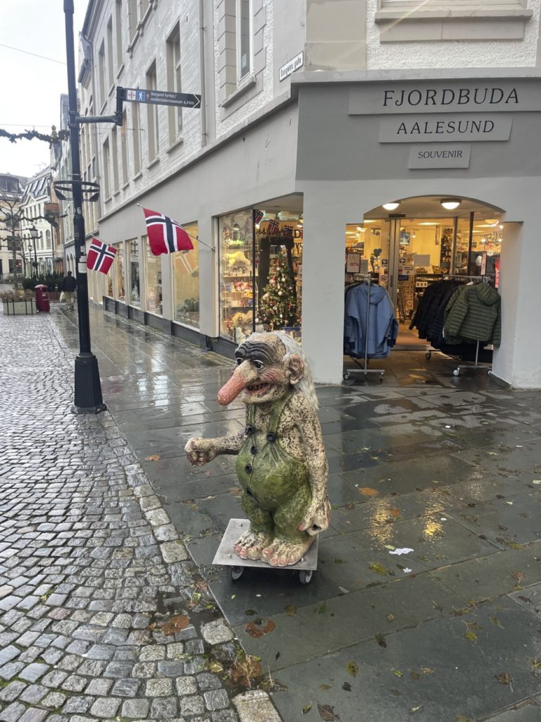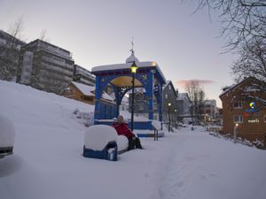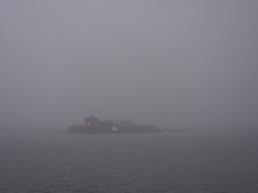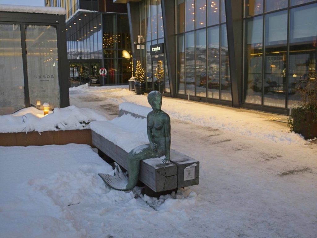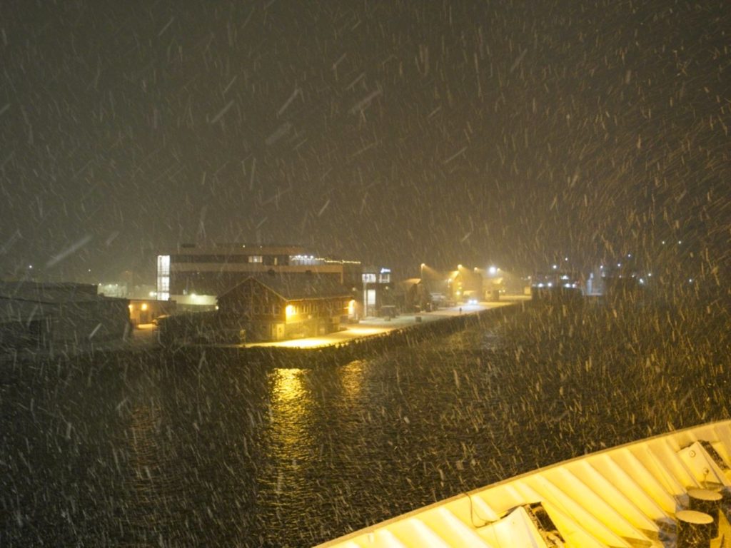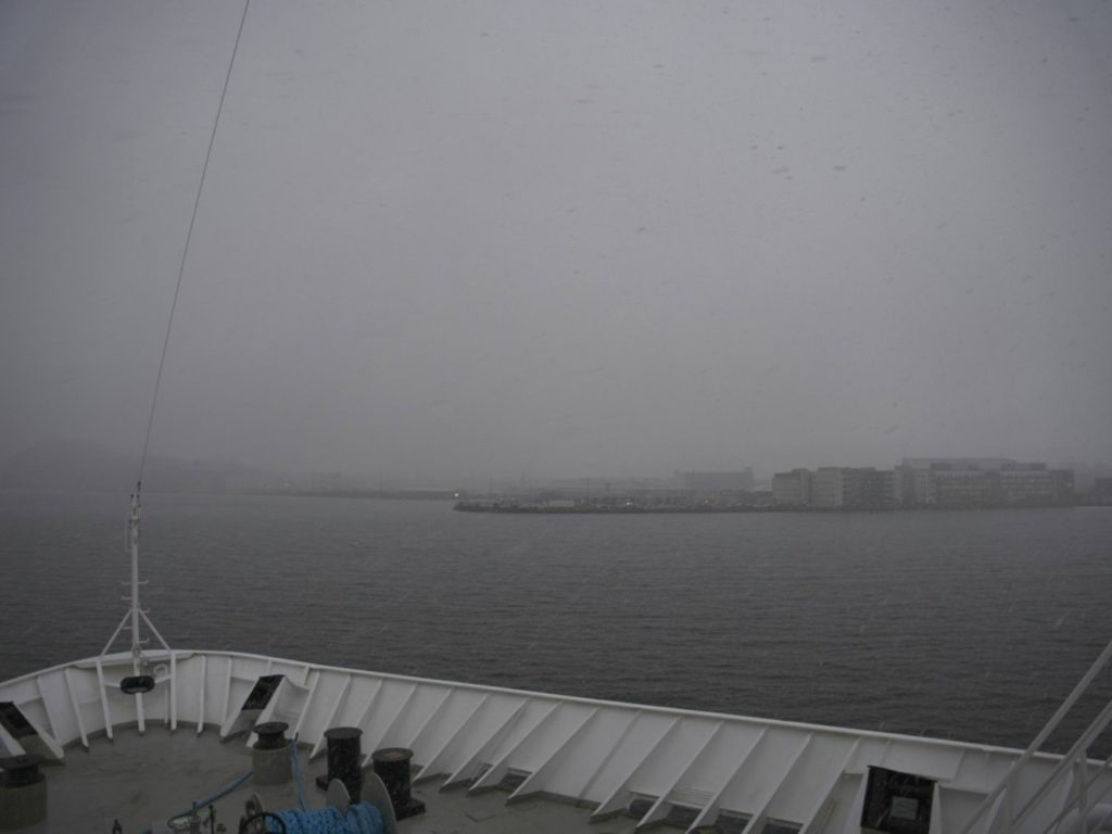Eine Stunde Aufenthalt haben wir hier, und draußen ist eine fiese Mischung aus geräumten Straßen, Schneematsch und zwischendrin Eis. Ich mache einen kurzen Besuch bei der Statue der Fischerfrau und gehe dann wieder zurück zum Schiff.