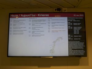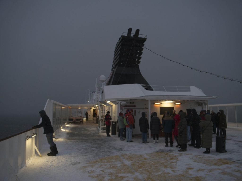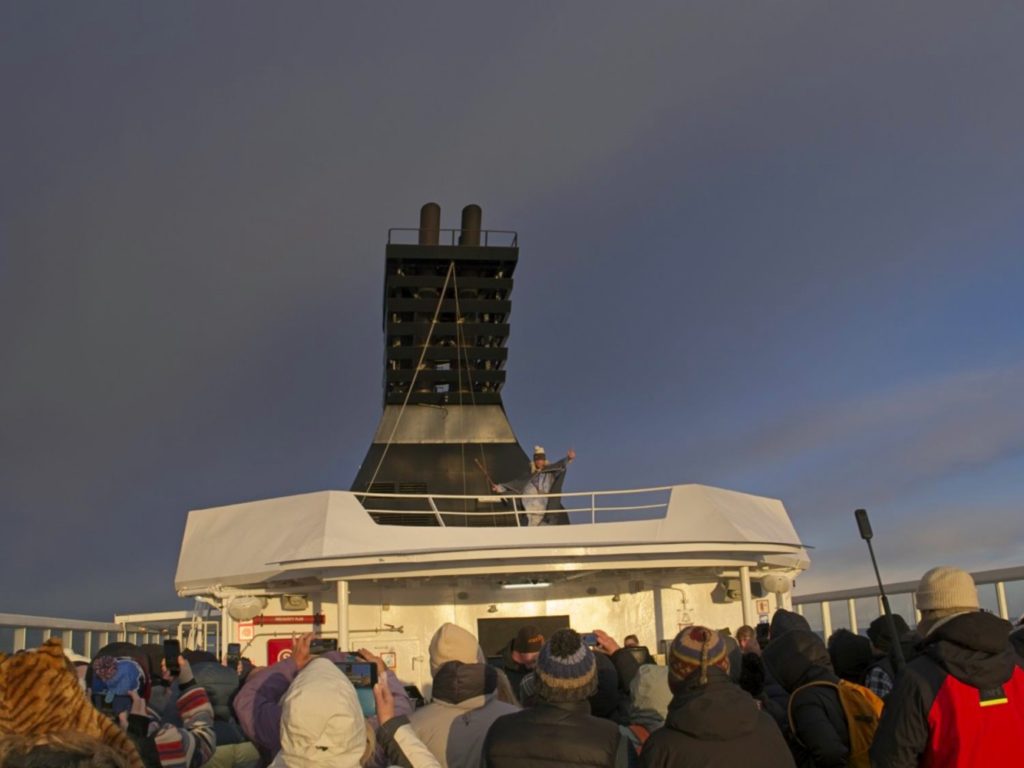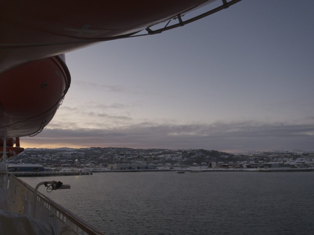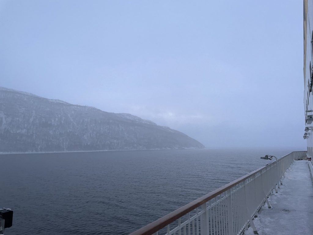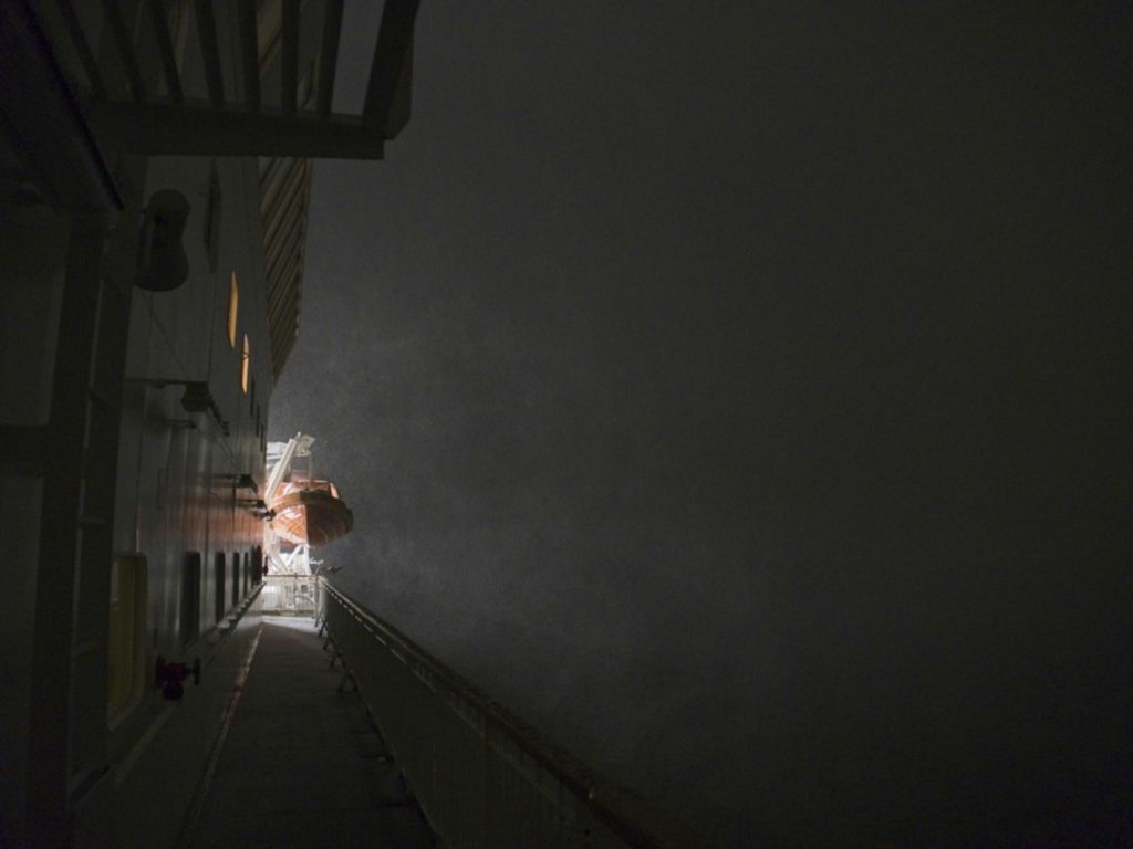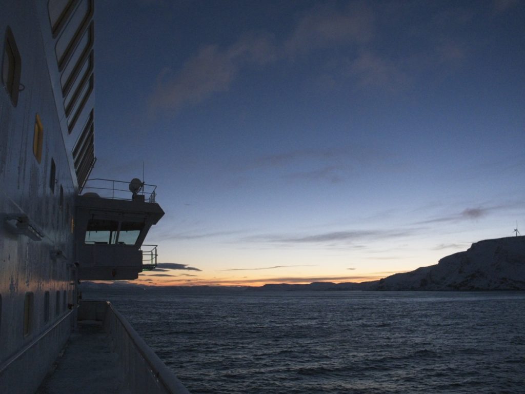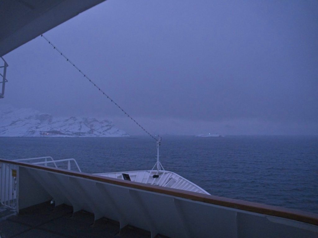 Und viel mehr gibt es über den Tag nicht zu sagen. Ein paar sanfte Wellen, ein paar Blicke an Deck (es ist bedeckt, aber weitestgehend trocken), und wer will, kann sein Handgepäck im Konferenzraum deponieren und die Landschaft genießen oder den Tourfilm vom Schiff noch einmal anschauen.