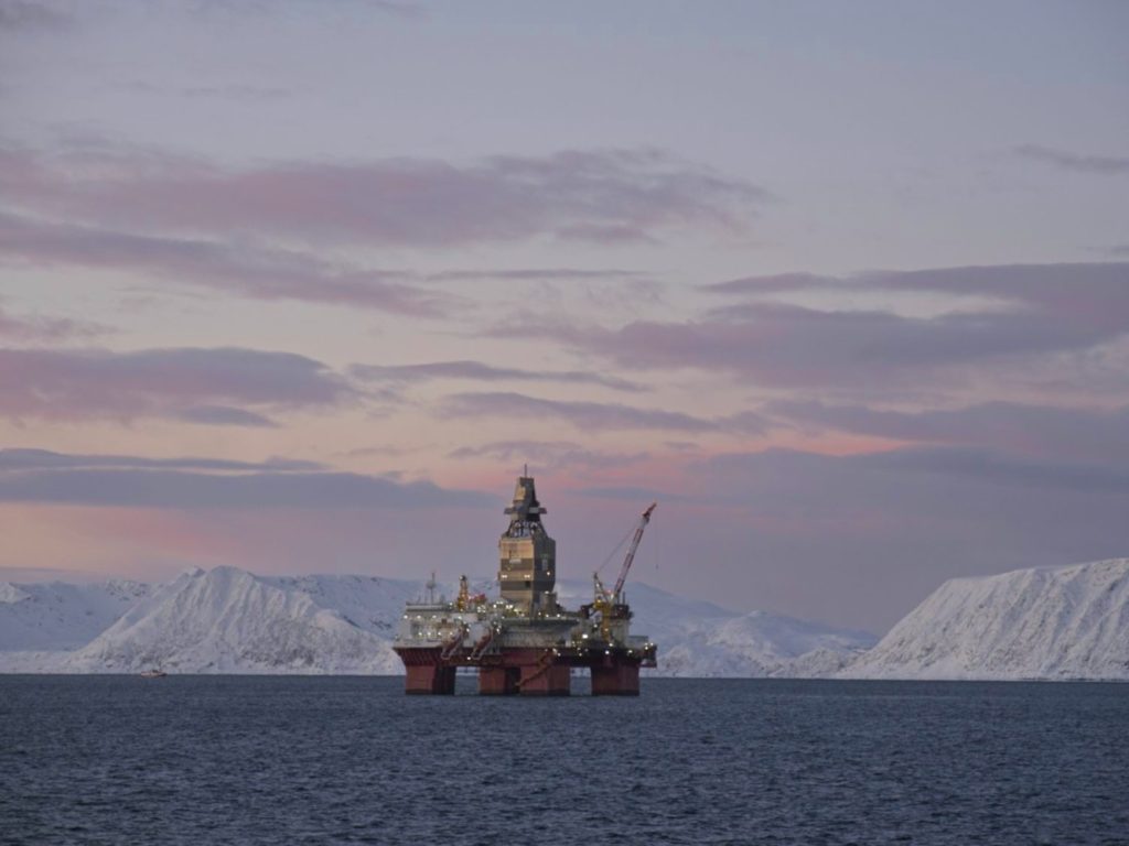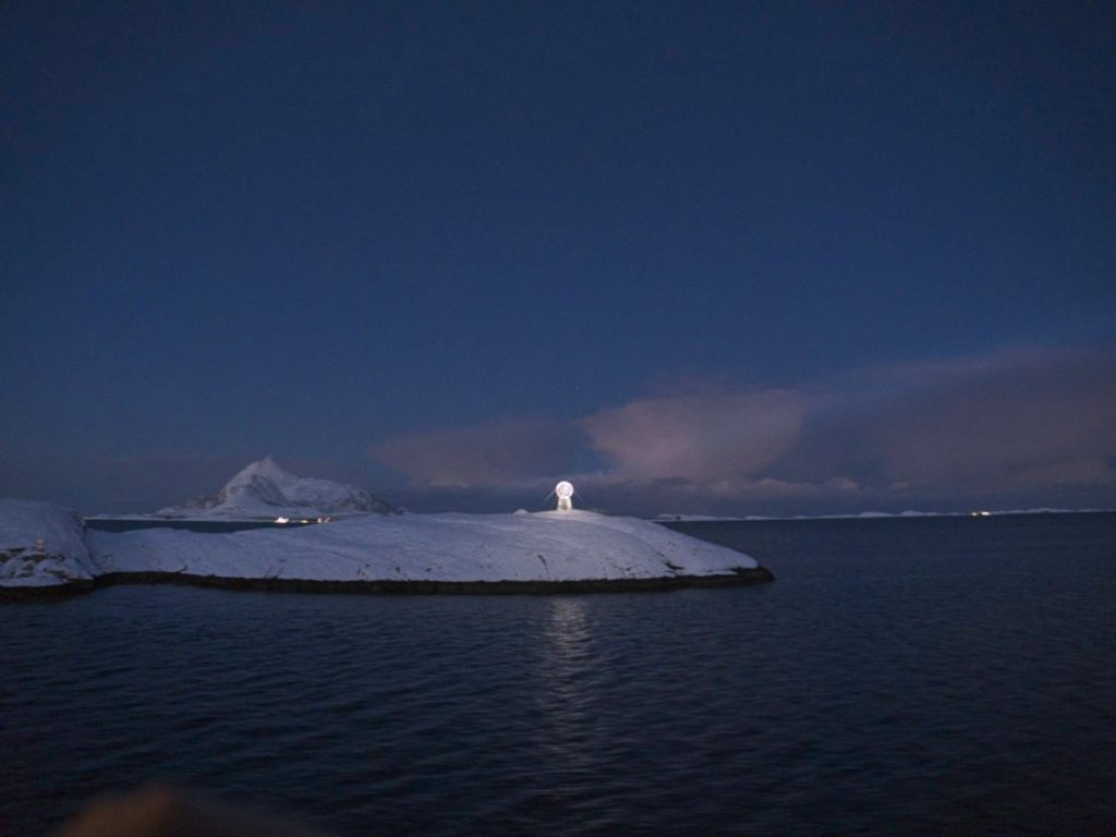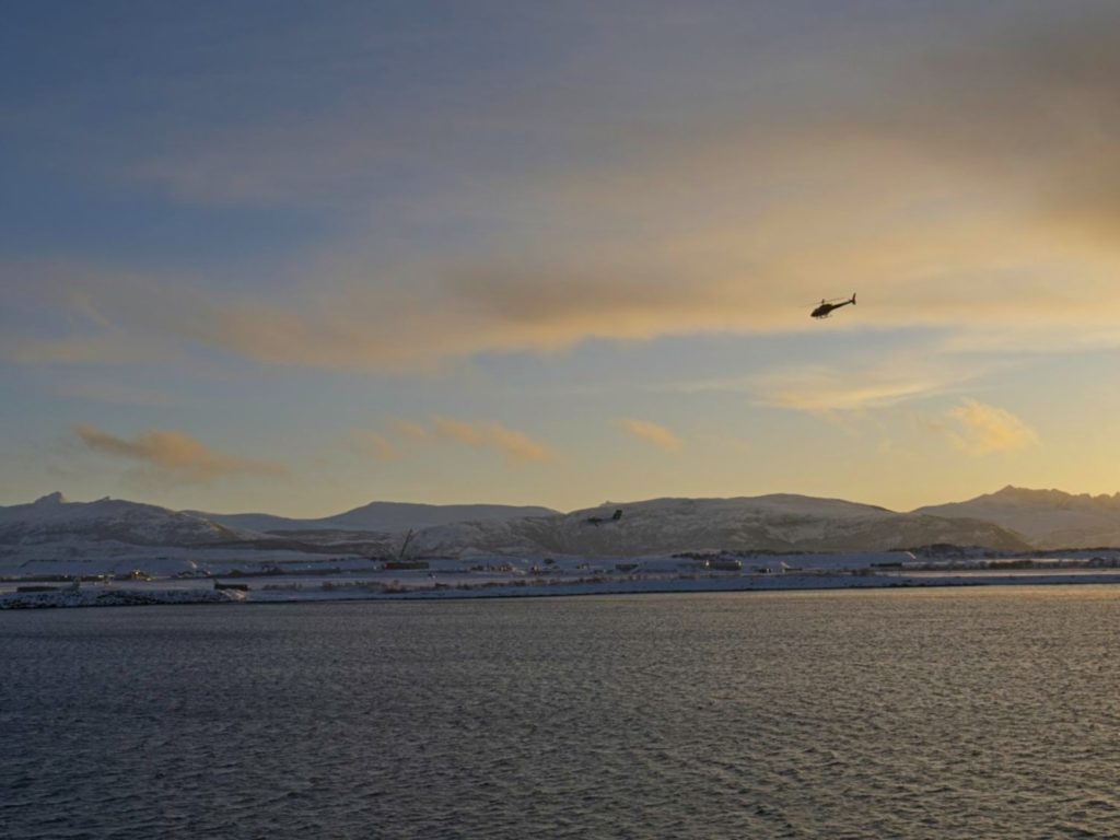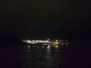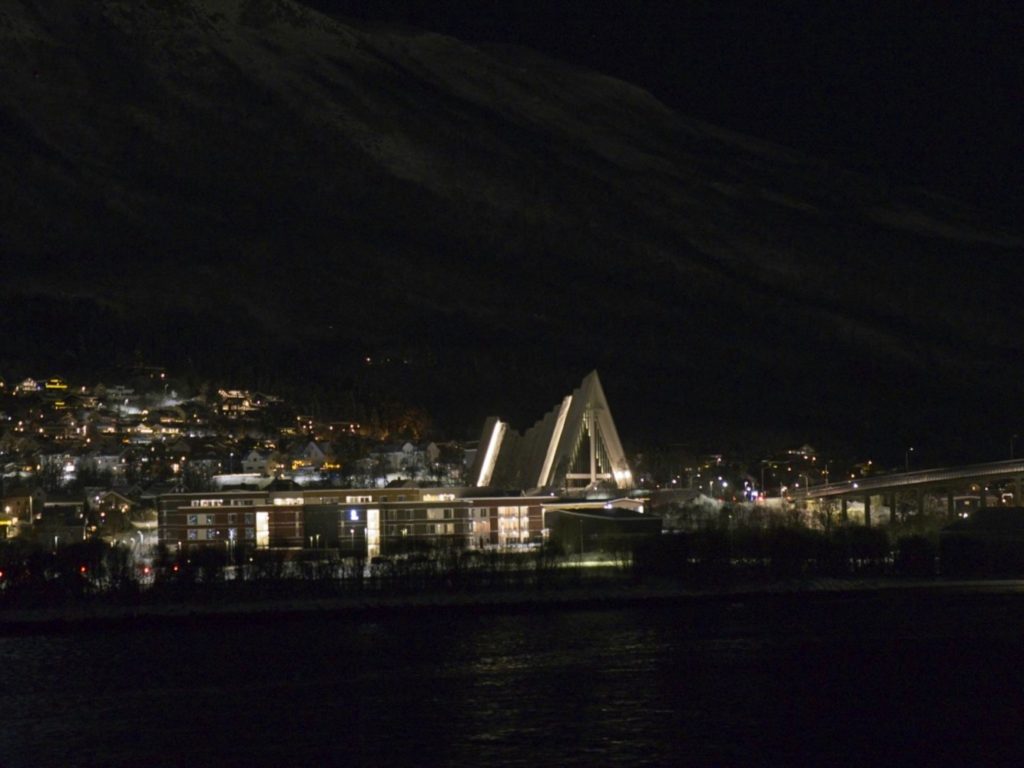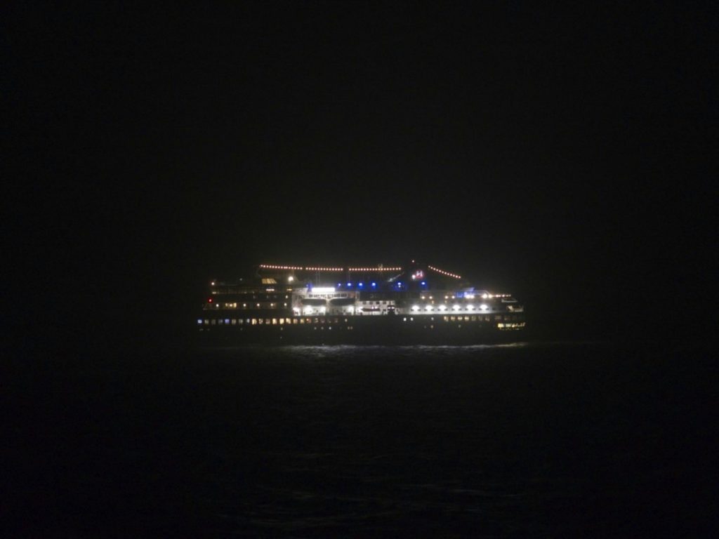 Ormen Lange ist eine riesige Industrieanlage, die 20% der Erdgasbedarfs von Großbritannien deckt. Wir sehen von ihr nur ein riesiges Lichterfeld in der Finsternis, auf das uns eine Durchsage gegen 20:30 hinweist.