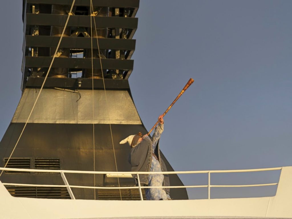 Direkt danach: Ab auf Deck 7, die Postflagge einholen und und an ihren neuen Besitzen übergeben. Unsere ganze Truppe versammelt sich, und wir nutzen die Gelegenheit für ein Gruppenfoto.