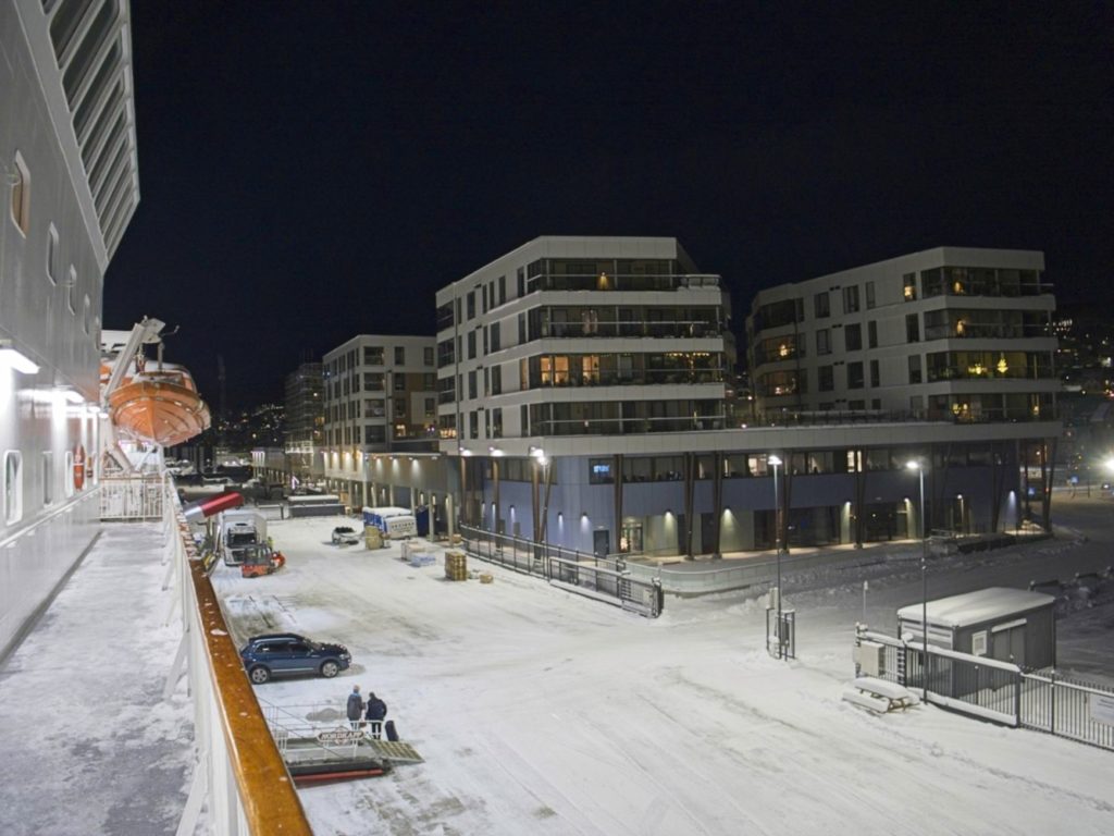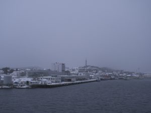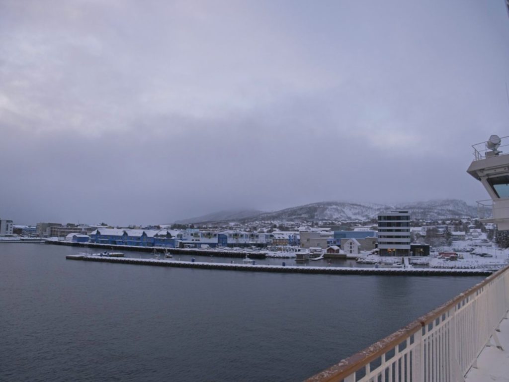 Kurz nach acht Uhr kommt Florø in Sicht, der letzte Hafen vor Bergen, und der letzte, den man noch ganz klassisch von Deck 5 aus anschauen kann. In Bergen ist da schon alles im Aufruhr.