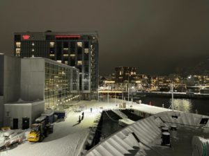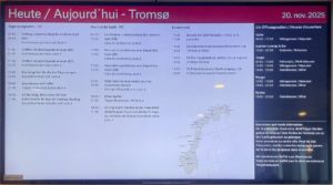 Um 14 Uhr sehen sich alle bei einem Vortrag von Laura wieder: Sie gibt Reisetipps für den nächsten Trip nach Norwegen, wenn man mal den Süden mit dem Auto erkunden will. Was hängen bleibt: Es gibt einen Haufen hübsche Ecken, sie betreibt im Sommer ein Hotel auf einer kleinen Insel, deren Namen ich vergessen habe (Ola?), und sowohl Lofoten als auch Tromsø sind mittlerweile völlig überlaufen – das kann ich bestätigen, schon in der Nebensaison sind die Regionen am Limit dessen, was Spaß macht.