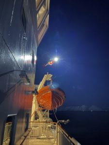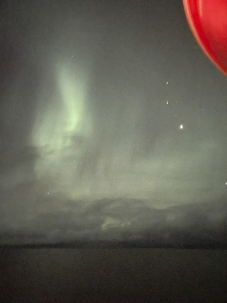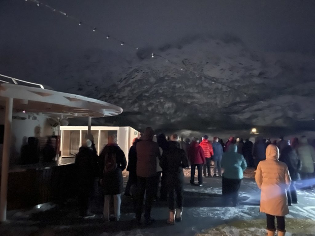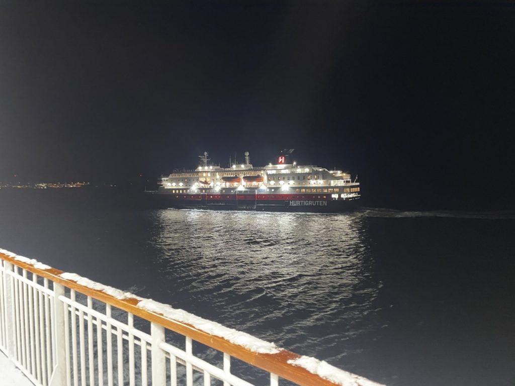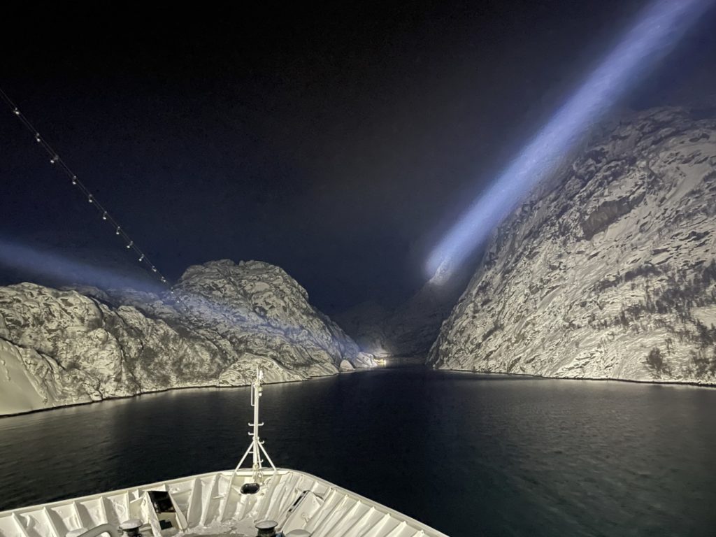 Bei der Ankündigung durch das Expeditionsteam hätte ich allerdings sowas Spektakuläres erwartet wie die Helge Ingstad (2018 war das – auch schon wieder so lange her). Aber egal, immerhin etwas Unterhaltung auf der letzten Strecke. Die letzten Stunden ziehen sich ja doch immer.