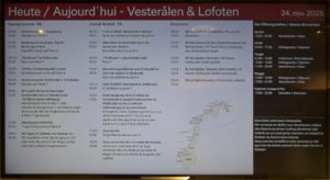 Dann verdrücke ich mich wieder: Um 11:30 haben wir unsere eigene Abschiedsveranstaltung, also schnell das Gruppenfoto bearbeiten, den Tourfilm fertig machen und ab in den Vortragsraum. Kai übernimmt das meiste Reden – etwas organisatorisches, etwas Humor und ein großes Danke auch von uns für die angenehme und tolle Tour, die auch uns Spaß gemacht hat. Dann mein Tour-Film, ein Ha det bra, auf besonderen Wunsch mein Nordlicht-Film und endlich wieder Essen. Es ist halb zwölf, Zeit für das Mittagessen. Und immer dran denken: It’s smarter to travel in groups!