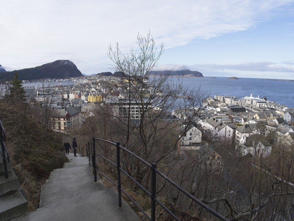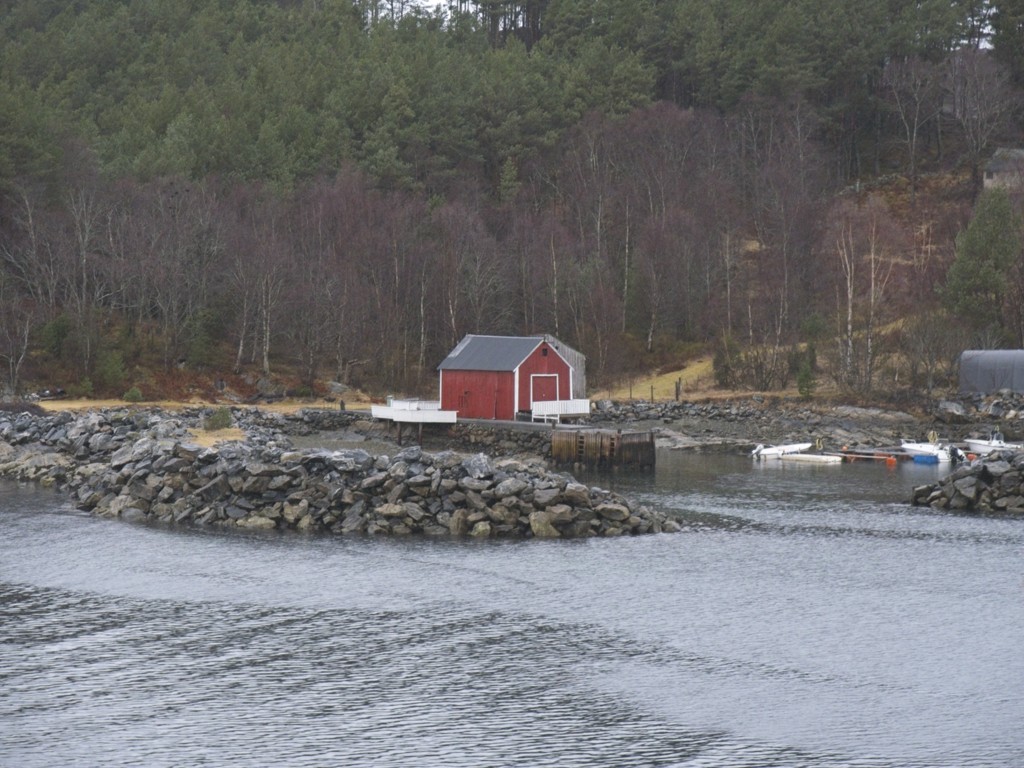 Der nächste Hafen, den ich wach mitbekomme, ist Florø, wo wir kurz anlegen: Schönes Wetter zum Frühstück, sehr schön. Bis zehn Uhr müssen die Kabinen geräumt werden, aber wenn das Wetter gut ist, kann man die restliche Zeit auch an Deck verbringen, statt nur in den Gängen auf seinen Koffern zu sitzen. Wobei das große Gepäck bis 10 Uhr abgegeben wird und man es dann in Bergen am Terminal vom Kofferband holen kann. So muss man nur auf sein Handgepäck aufpassen.
