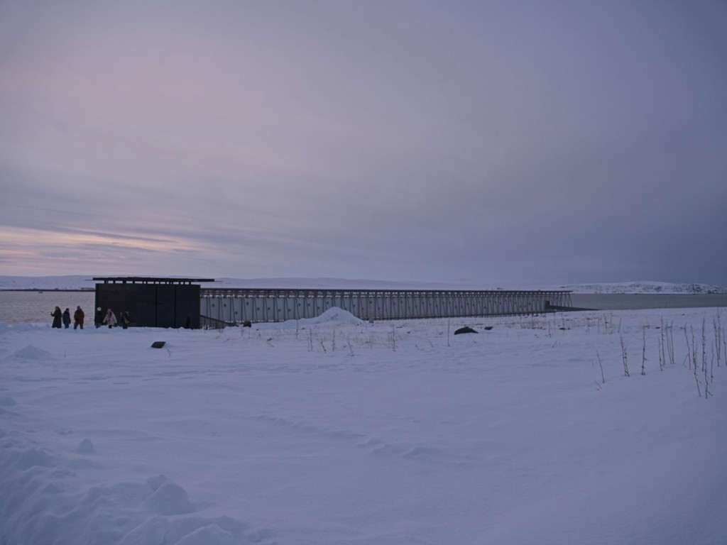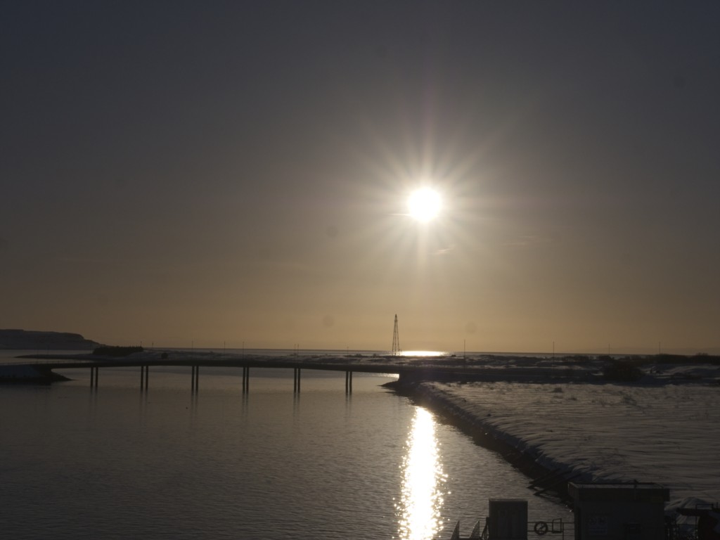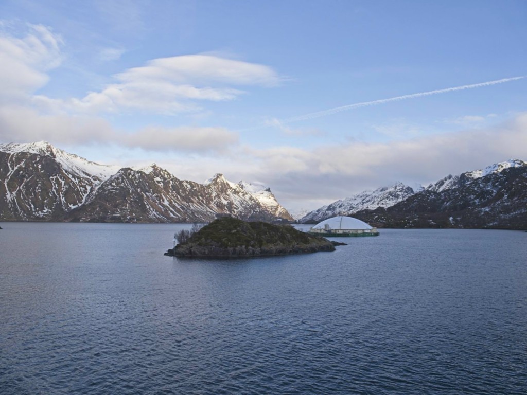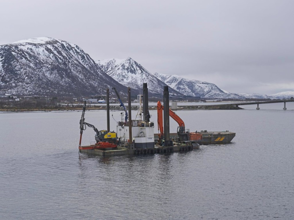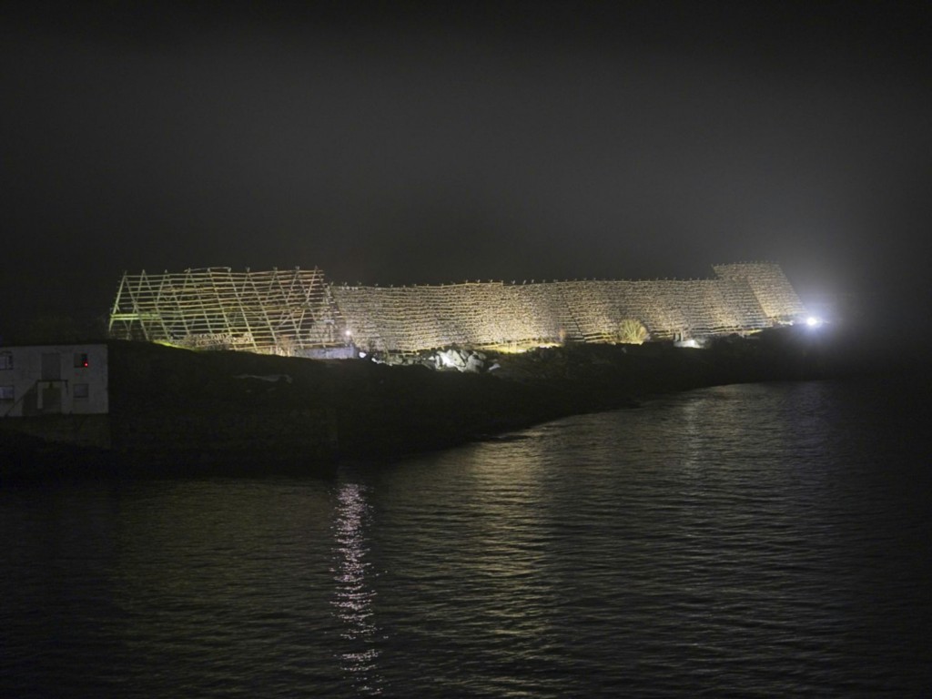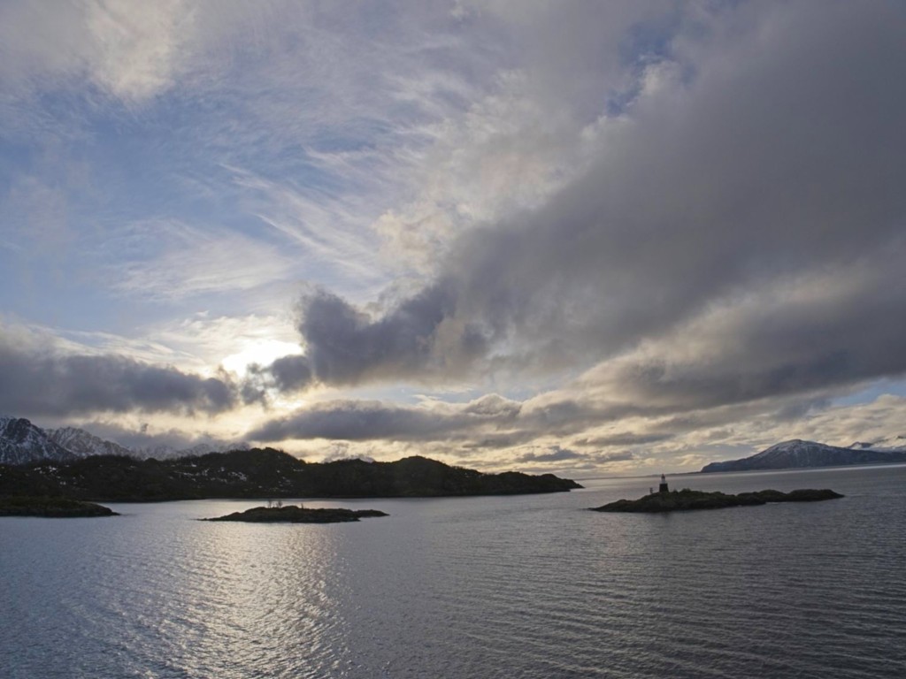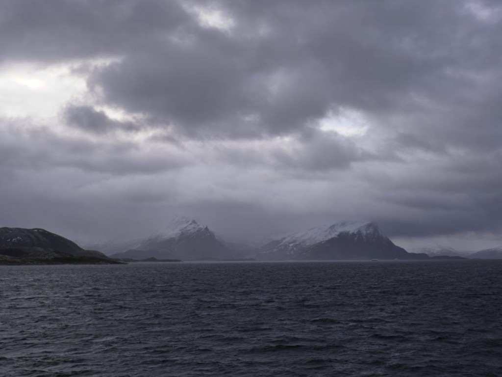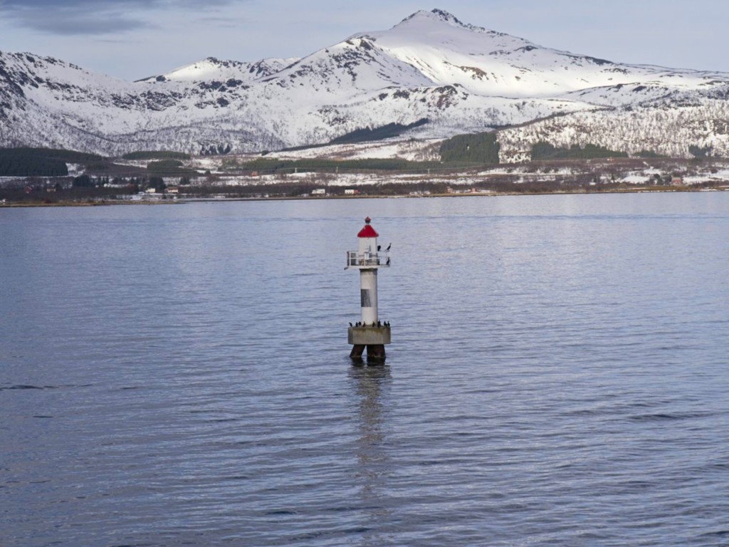 Gegen 11 Uhr erreichen wir den engen Steinsund. Der ist immer hübsch – man kommt Norwegen noch einmal richtig nahe, ohne das Schiff zu verlassen – auch wenn das Wetter am Bug nicht zum Verweilen einlädt. Die Brücke auf die Insel Ytre Sula mit ihren 130 Einwohnern nimmt auch Gestalt an – aus der Ferne könnte man meinen, dass da was aus einem Science-Fiction-Film auf uns wartet. (Für unsere Filmfreunde noch eine Quizfrage: “Ich habe da ein ganz mieses Gefühl” – welcher Film?)