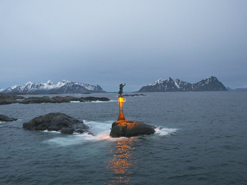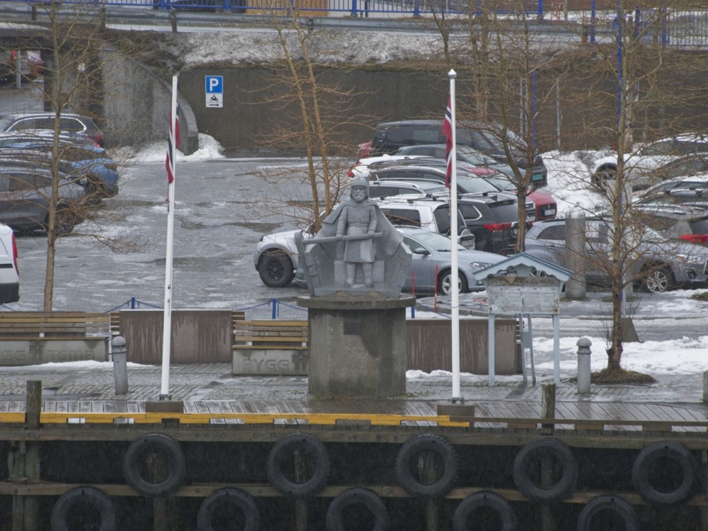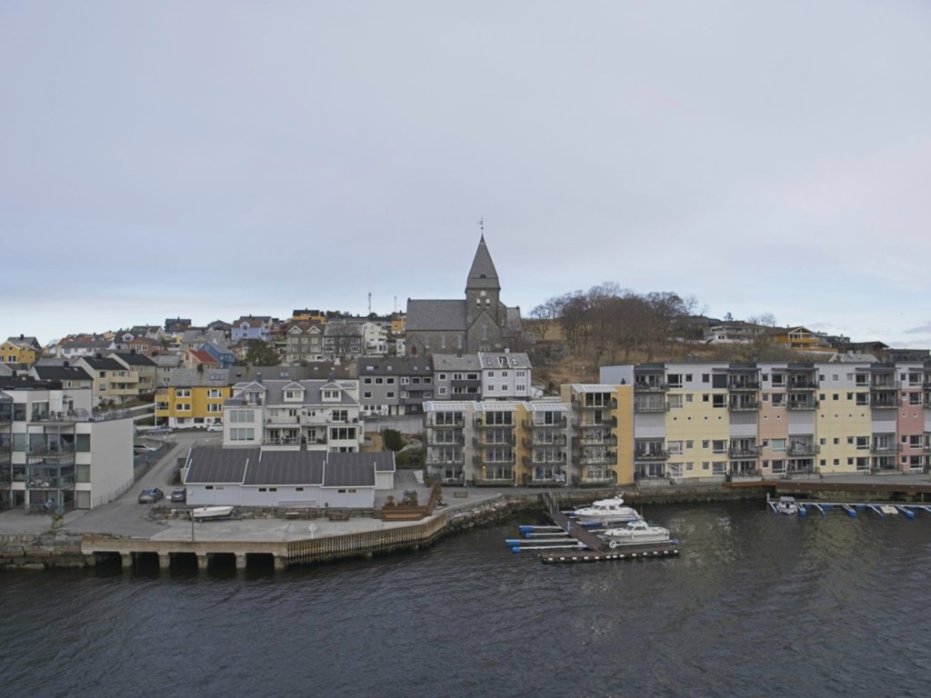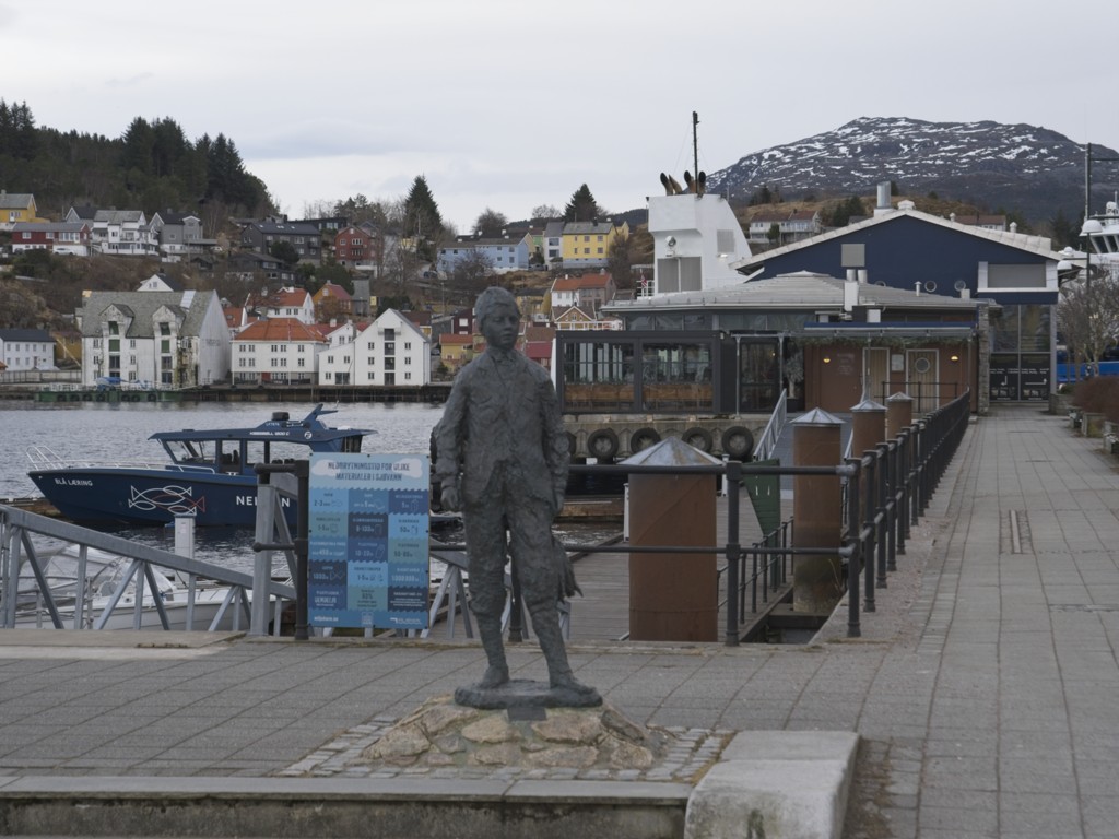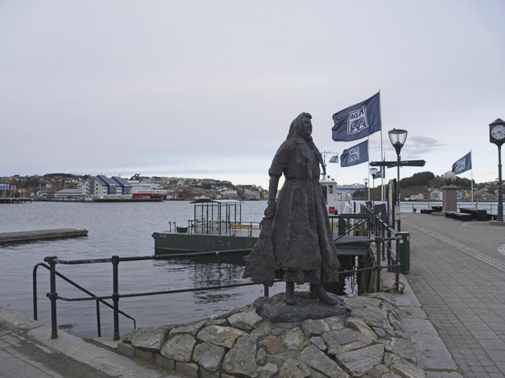 In Kristiansund wehen jede Menge Flaggen des Kristiansund Ballklubben KBK, es ist wohl Fußballsaison. Als wir anlegen, macht Kai eine schnelle Runde durch den Ort: Die beiden Statuen vom Heringsjungen und der Klippfischfrau sind ja die Standard-Stopps, aber Norwegens älteste Oper im schönen Jugendstil und die moderne Kirkelandet-Kirche sind ebenfalls gerade noch in Reichweite, wenn man etwas Gas gibt.