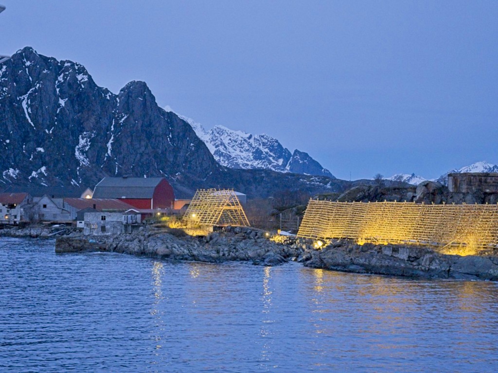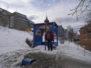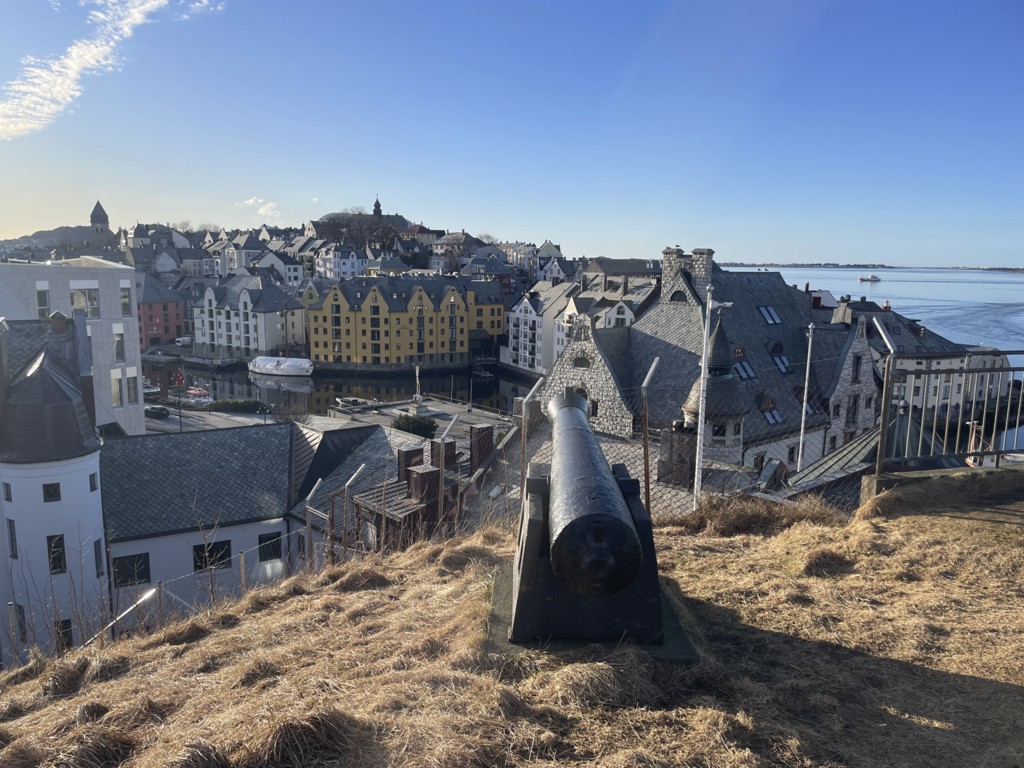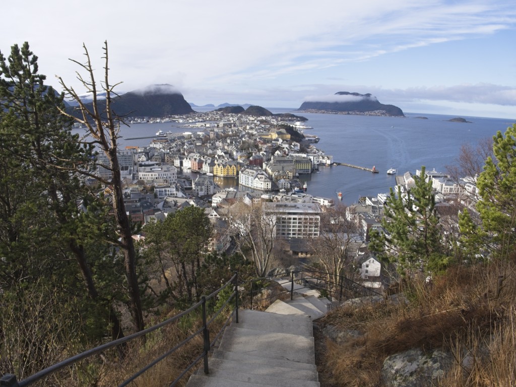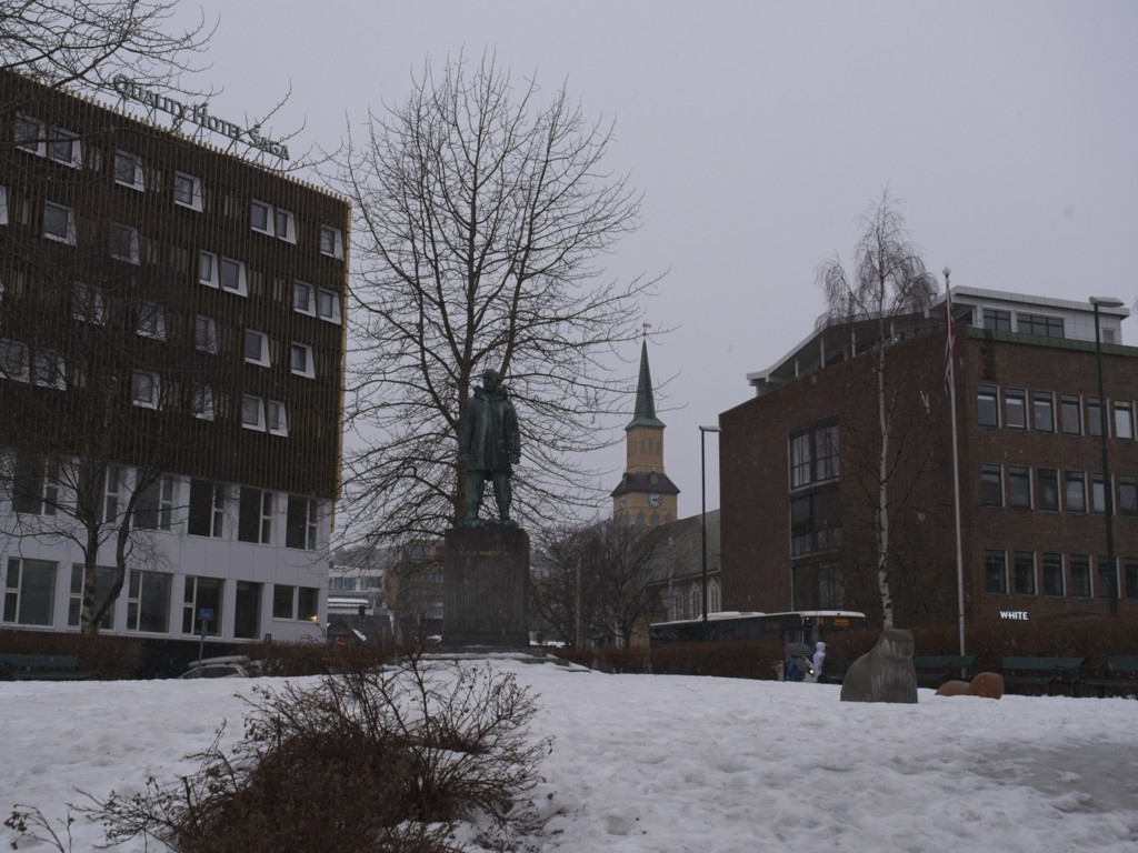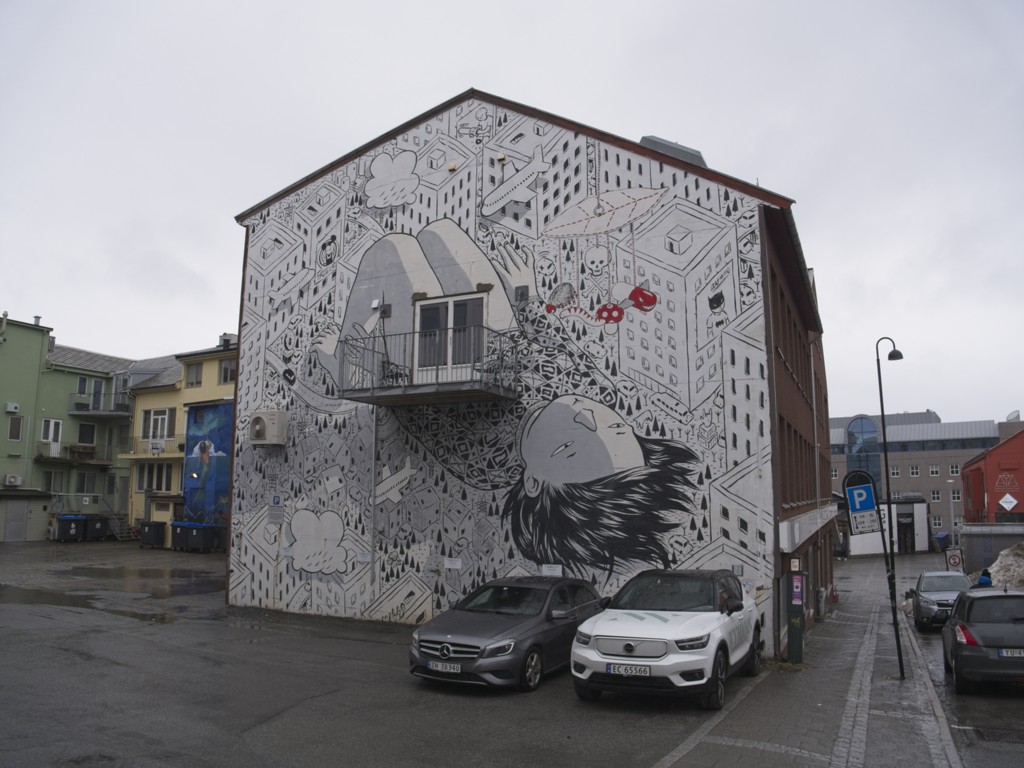 In Kristiansund wehen jede Menge Flaggen des Kristiansund Ballklubben KBK, es ist wohl Fußballsaison. Als wir anlegen, macht Kai eine schnelle Runde durch den Ort: Die beiden Statuen vom Heringsjungen und der Klippfischfrau sind ja die Standard-Stopps, aber Norwegens älteste Oper im schönen Jugendstil und die moderne Kirkelandet-Kirche sind ebenfalls gerade noch in Reichweite, wenn man etwas Gas gibt.