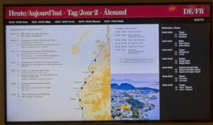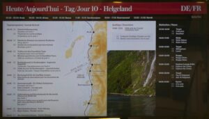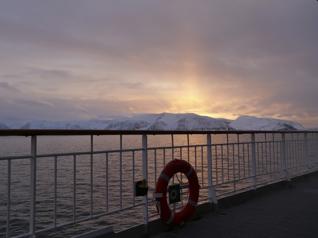 Einziger Wermutstropfen: Das Schiff bietet noch einen Vortrag über norwegische Geografie an, den ich dadurch verpasse – auch wenn Kai das mit dem Check-In auch alleine hinkriegen würde.
