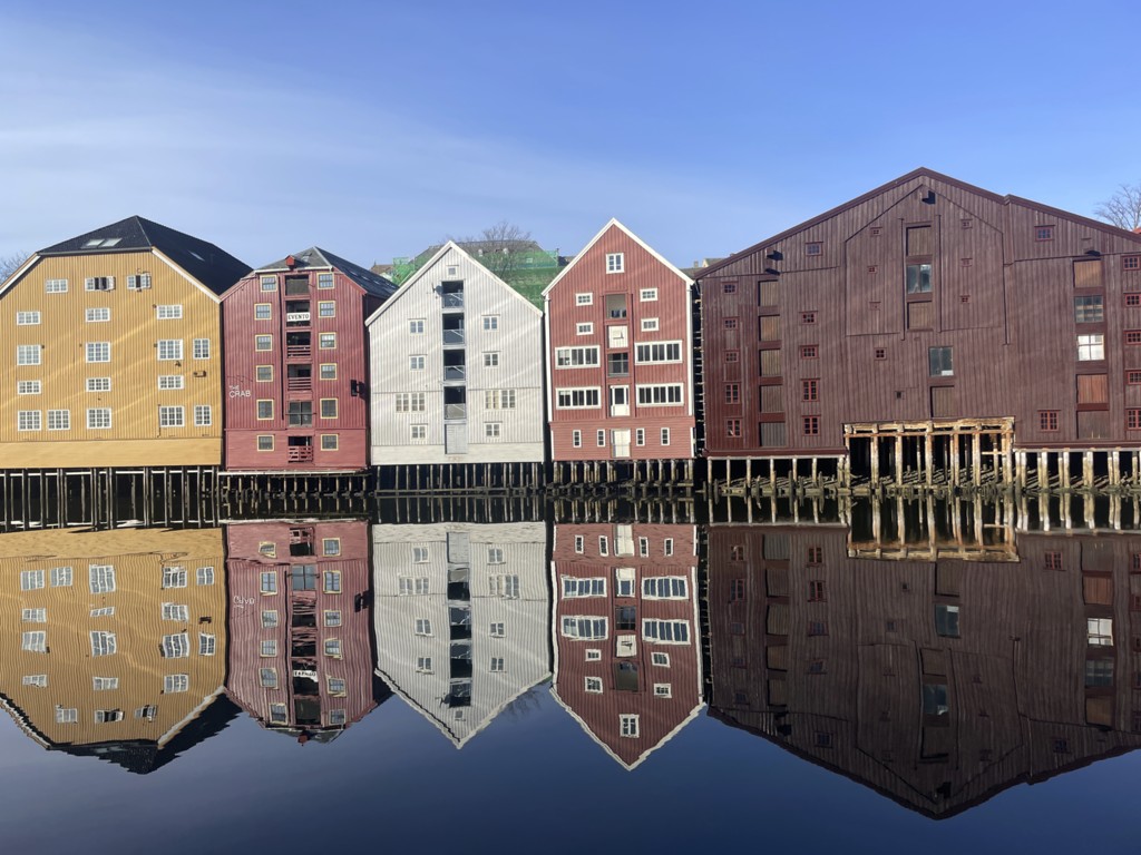 Über die letzten beiden Reisetage gibt es immer wenig zu berichten. Trondheim erreichen wir zu nachtschlafender Zeit, ich wache bei strahlendem Sonnenschein auf. Einen Gang in die Stadt, bevor die Geschäfte aufmachen, spare ich mir – erst recht an einem Sonntag. Ein paar hübsche Bilder vom Schiff aus müssen reichen.